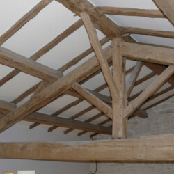 Le chêne est l’élément noble de la charpente, du fait de sa solidité et de la qualité de son cœur. Il est couramment rencontré dans la restauration du patrimoine ancien. La menuiserie Bois Baron de par son histoire, maîtrise parfaitement ce type de fabrication